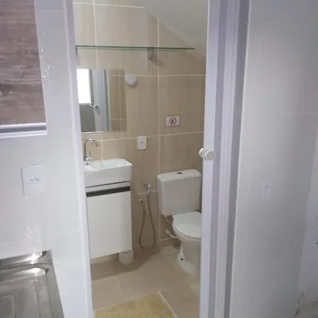 The 1-room Hospede-Se No Ipsep, Em Recife, Proximo Ao Aeroporto Internacional Dos Guararapes Apartment offers guests the convenient feature of towels in the bathroom. Additionally, you'll find a separate toilet and a shower.